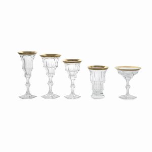 Boemia, XX sec. in cristallo trasparente e profilo dorato, marchio della produzione. Composto da: 10 bicchieri [..]