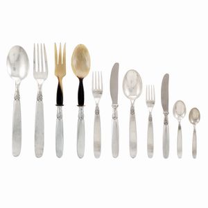 peso netto 1.730 gr. Italia, inizio XX Sec. orafo Clementi, Bologna, manici decorati con motivi Liberty. Composto [..]