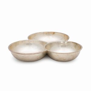 4x26x23 cm. Italia, XX Sec. sezione circolare composta da tre contenitori riuniti, peso 369 gr.