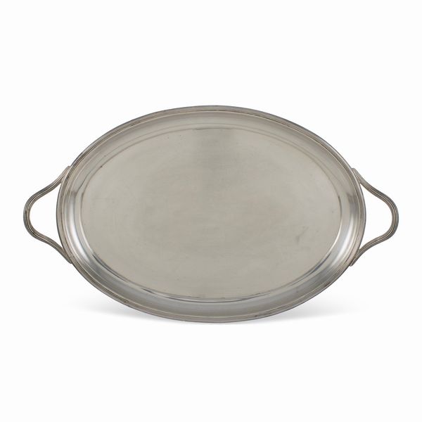 Italia, 1970 sezione ovale con profilo e manici godronati, firmato, peso 2.476 gr.
