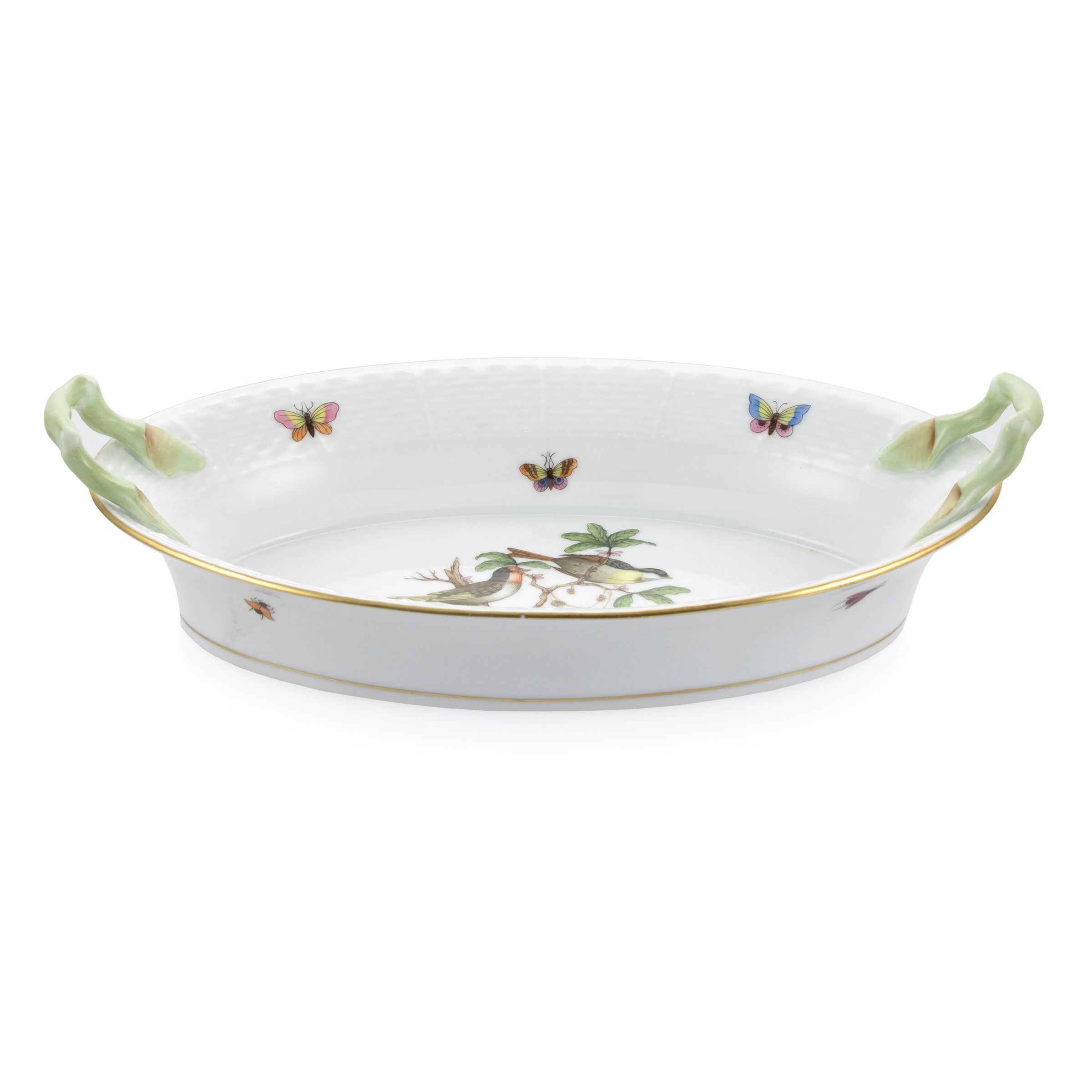 Ungheria, XX Sec. decoro Rothschild decorato in policromia su fondo bianco, bordo Ozier e profilo dorato, marchio della produzione