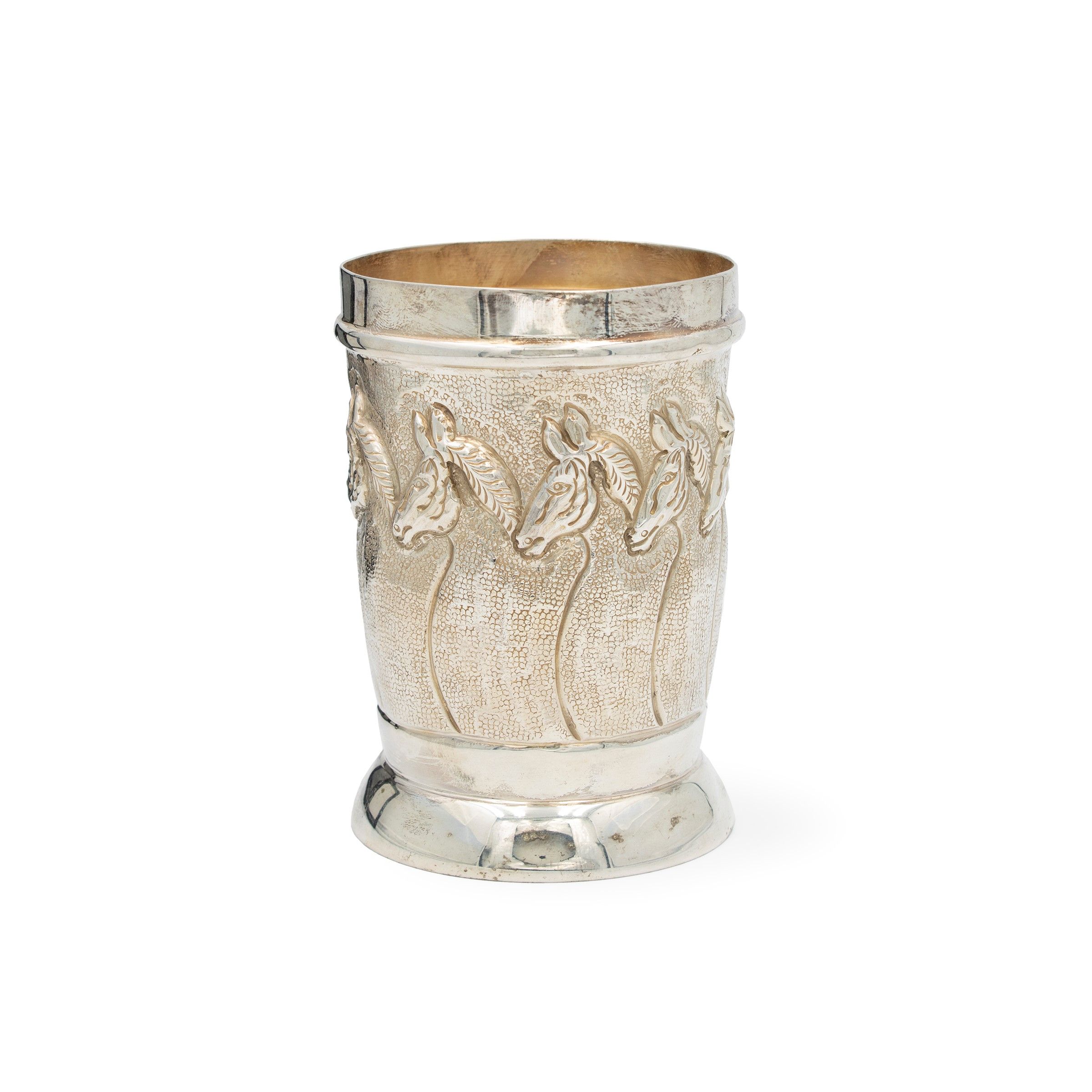 Inghilterra, XX Sec. corpo sbalzato e cesellato con teste di cavallo