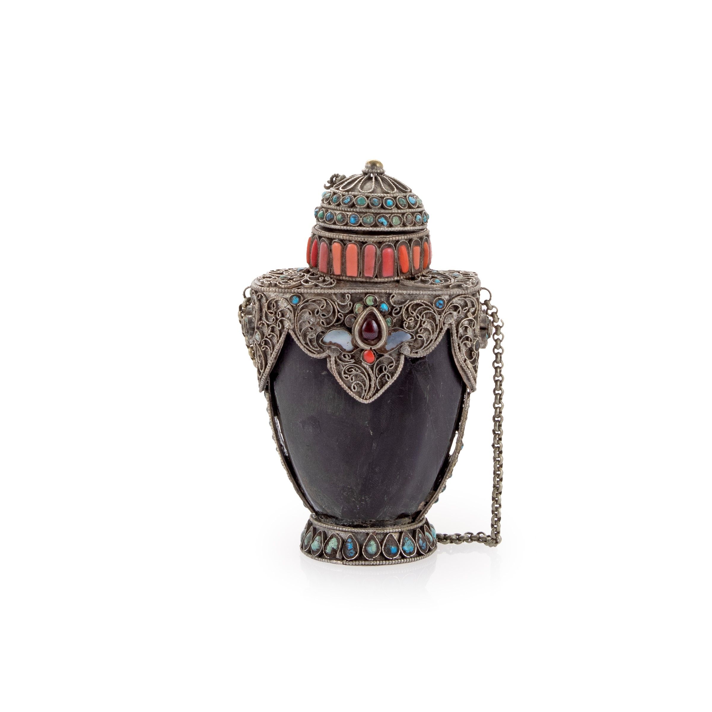 XIX Sec. corpo in legno con montatura in argento e pietre semipreziose
