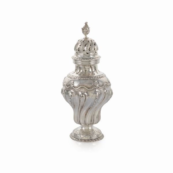 Londra, 1895 corpo baccellato, sbalzato e cesellato con motivi vegetali, peso 282 gr.