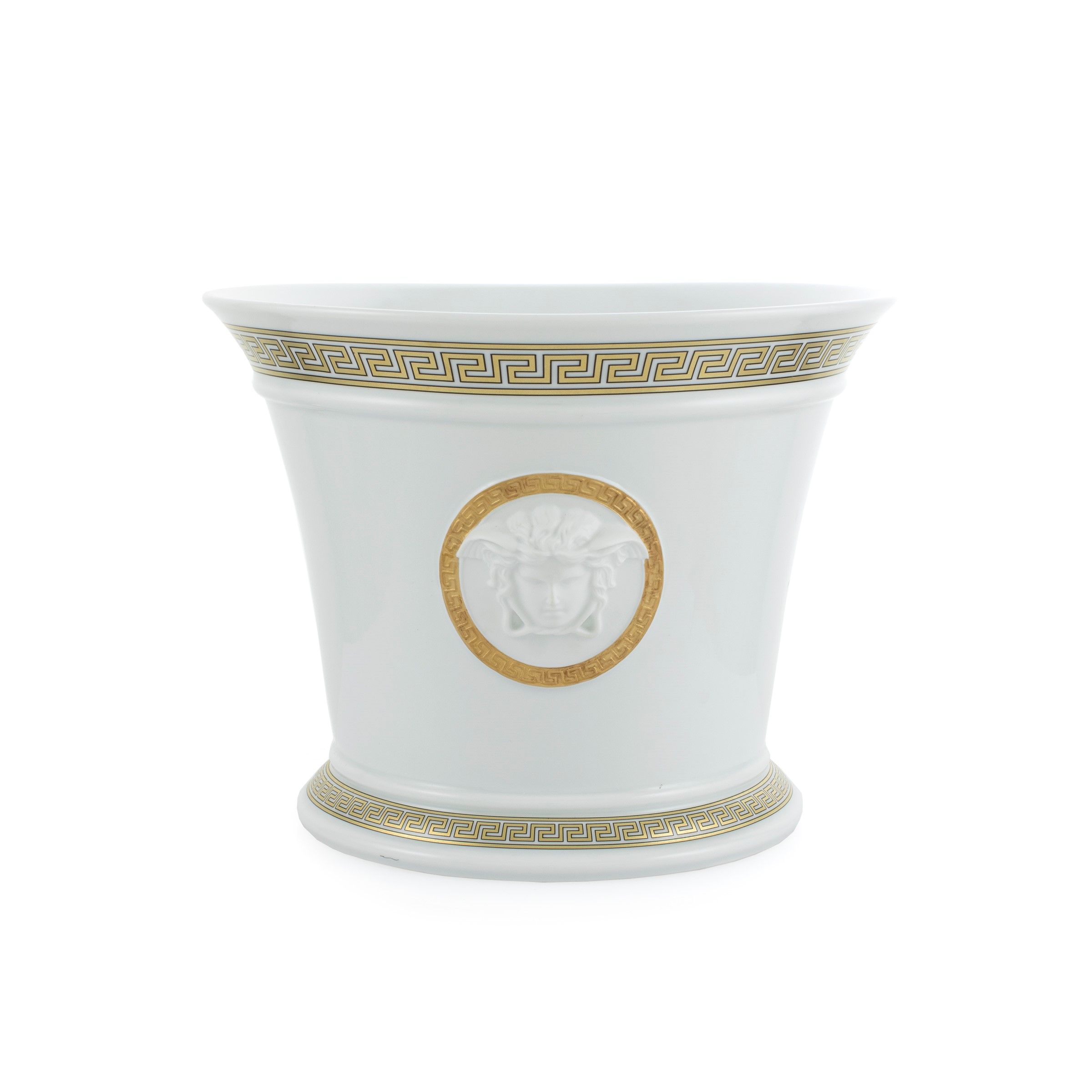 Germania, XX Sec. cachepot collezione Gorgona in porcellana bianca e dorata, marchio della produzione