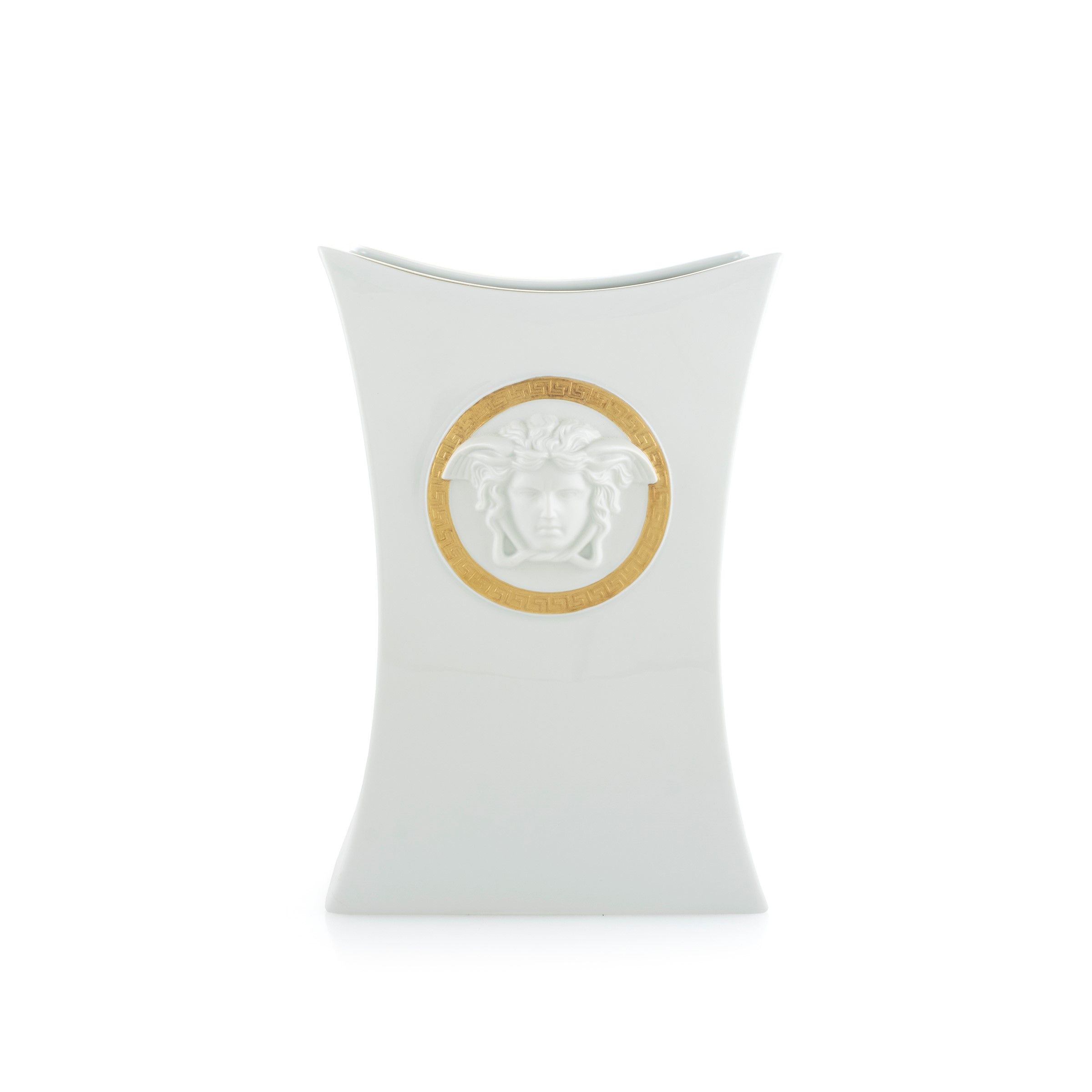 Germania, XX Sec. vaso collezione Gorgona in porcellana bianca e dorata, marchio della produzione