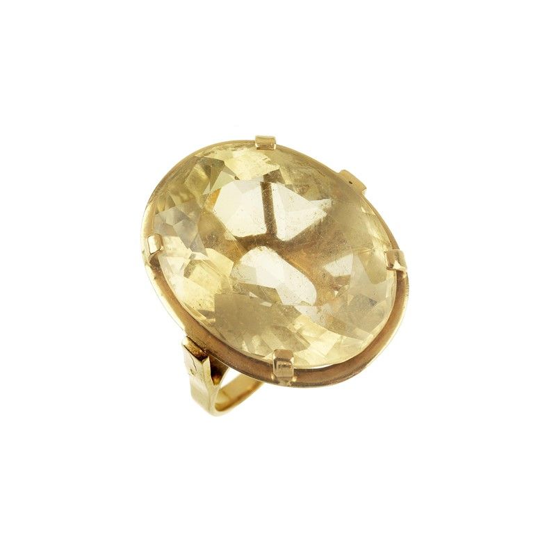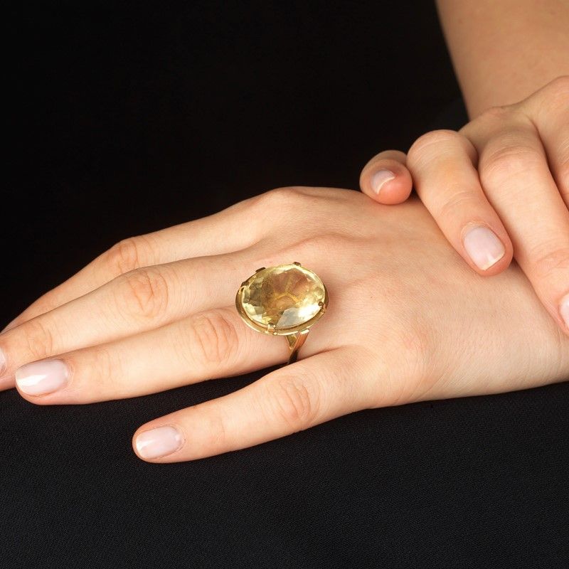 in oro giallo 18kt, impreziosito da un grande quarzo citrino taglio ovale di ct 20 circa, mis. 13/53, gr. 9