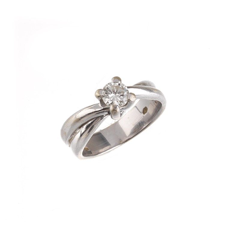 in oro bianco 18kt, al centro un diamante taglio brillante di ct 0.50 circa, punzone 750, mis. 13/53, gr. 7
