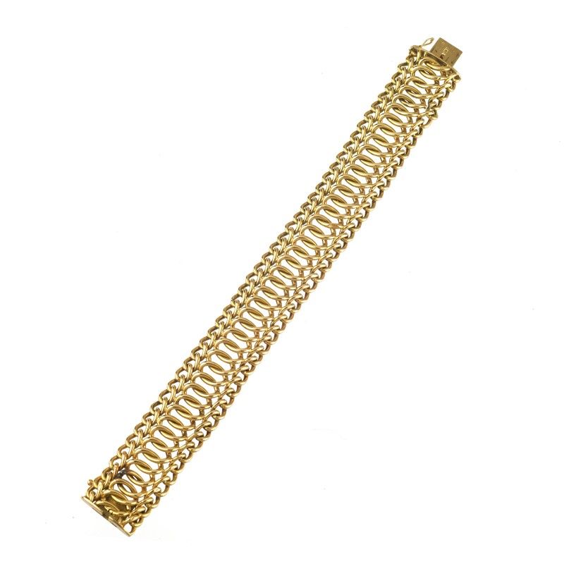 in oro giallo 18kt, realizzato a catena, punzone 750 e marchio del fabbricante, lungh. cm 18, gr. 22