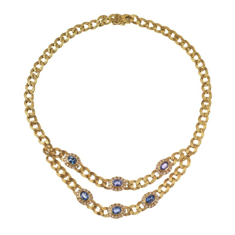 SYNTHETIC STONE AND DIAMOND CURB CHAIN NECKLACE IN 18KT YELLOW GOLD