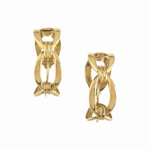 PAIO DI ORECCHINI A CERCHIO in oro giallo 18kt, realizzati a forma di catena, punzoni 750 e del fabbricante, dim. [..]