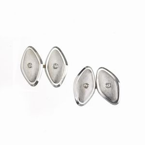 PAIO DI GEMELLI CON DIAMANTI in oro bianco 18kt, a forma di rombi, impreziositi al centro da diamanti taglio huit [..]