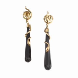 PAIO DI LUNGHI ORECCHINI PENDENTI in oro giallo 18kt, realizzati a forma di serpenti volti a cingere due elementi [..]