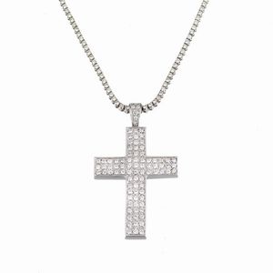 COLLANA CON PENDENTE A CROCE in oro bianco 18kt, impreziosita da diamanti taglio brillante per ct 5 circa, punzoni [..]