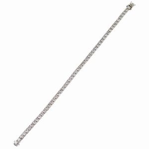 BRACCIALE TENNIS in oro bianco 18kt, impreziosito da una fila di diamanti taglio brillante per ct 5.20 circa, [..]