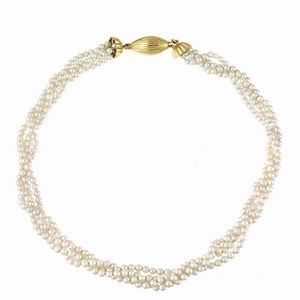 COLLANA DI PERLE composta da quattro fili di perle di mm 3 circa, fermatura in oro giallo 18kt, punzone 750, lungh. [..]