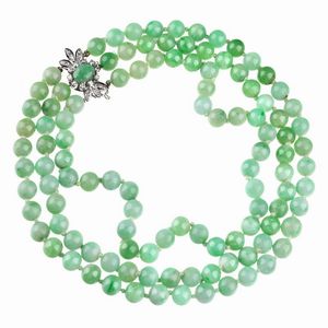 COLLANA IN GIADA composta da tre fili di sfere in giada di mm 9 circa, fermatura in oro bianco 18kt impreziosita [..]