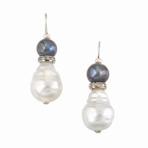 PAIO DI ORECCHINI PENDENTI CON PERLE BAROCCHE E DIAMANTI in oro a basso titolo e argento, composti da due perle [..]
