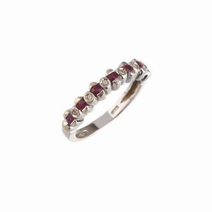 FEDINA CON RUBINI E DIAMANTI in oro bianco 18kt, impreziosita da una fila di rubini taglio rotondo per ct 0.20 [..]