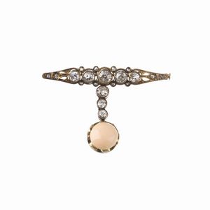 SPILLA A BARRETTA CON CORALLO ROSA E DIAMANTI in oro e argento, impreziosita da diamanti taglio vecchio e a rosa [..]