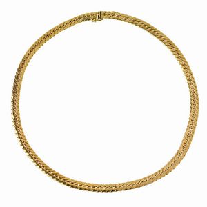 COLLANA A MAGLIA GROUMETTE in oro giallo 18kt, realizzata a maglia piatta, punzoni 750 e del fabbricante, lungh. [..]