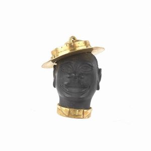 PENDENTE "MORETTO" in ebano inciso, con base e cappello in oro giallo 18kt, punzoni 750 e del fabbricante, [..]