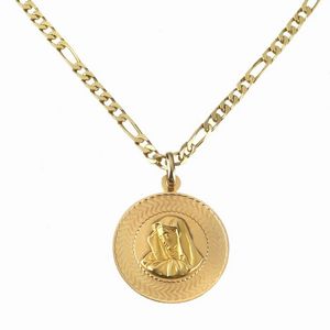 LUNGA COLLANA A CATENA CON PENDENTE in oro giallo 18kt, composta da catena e medaglietta religiosa di diam. cm [..]