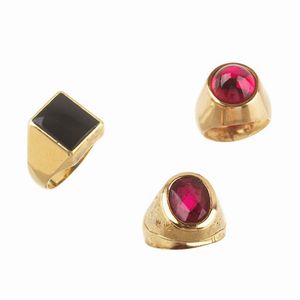 TRE ANELLI CHEVALIER du cui due in oro giallo 18kt e uno in oro 14kt, con pietre semipreziose, mis. 19/59, 9/49 [..]