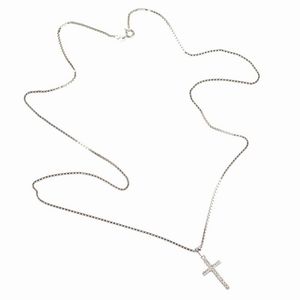 COLLANA CON PENDENTE A FORMA DI CROCE in oro bianco 18kt, punzoni 750 e del fabbricante, lungh. cm 60 circa, gr. [..]