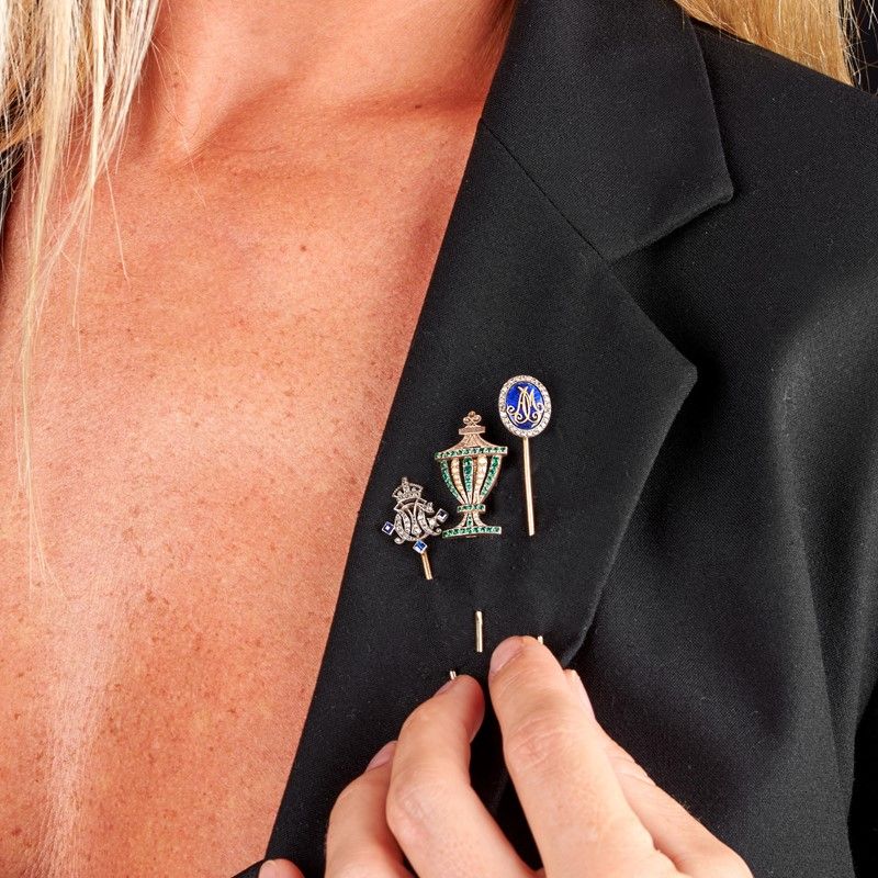 in oro e argento, impreziositi da pietre di colore e rose di diamante, lungh. cm 7, gr. 9 complessivi