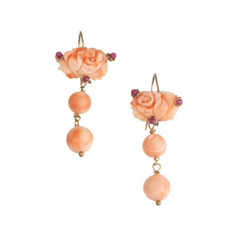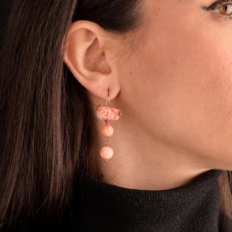 PAIO DI ORECCHINI PENDENTI CON CORALLO ROSA