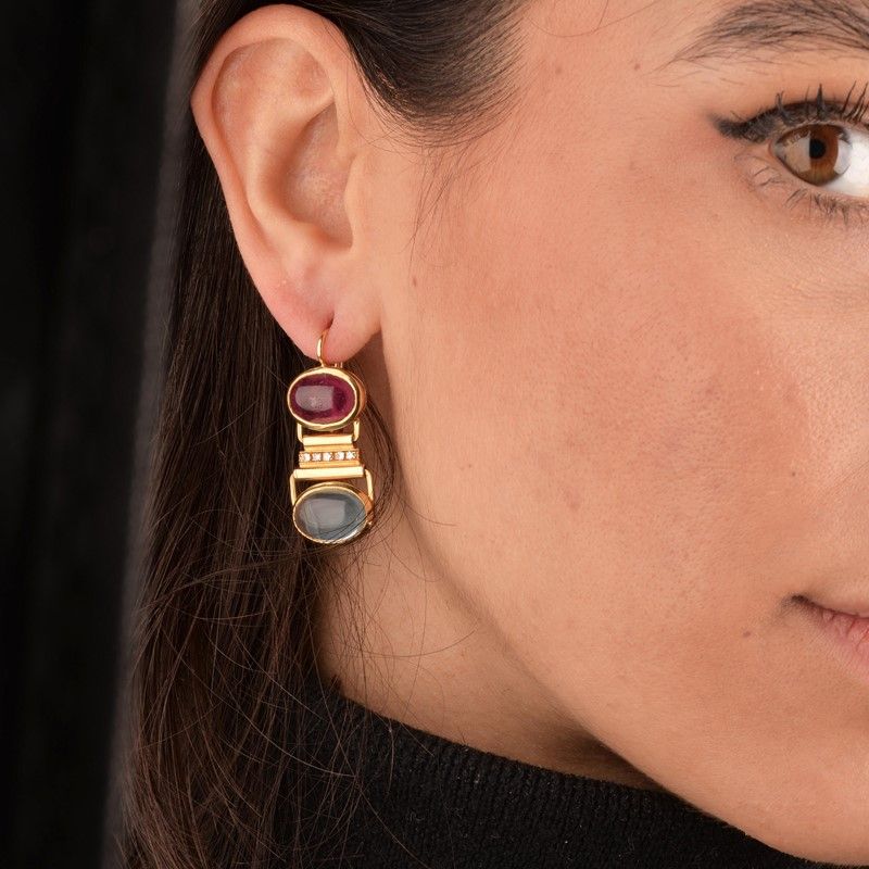 PAIO DI ORECCHINI PENDENTI CON PIETRE SEMIPREZIOSE E DIAMANTI