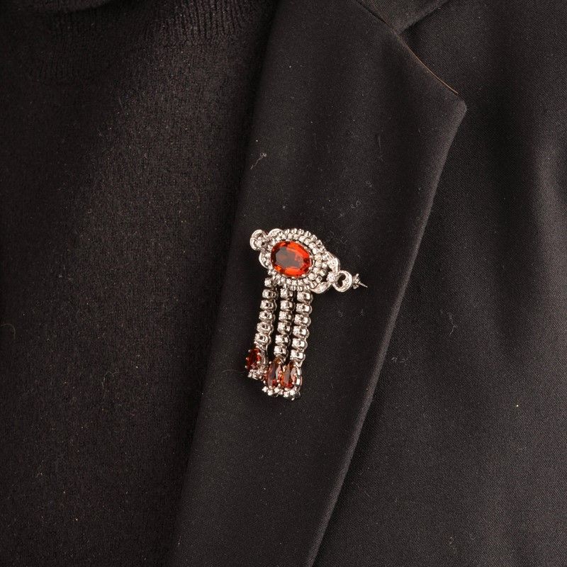 FRINGED QUARTZ AND DIAMOND BROOCH IN 18KT WHITE GOLD