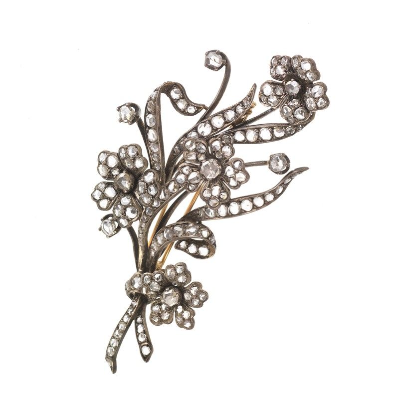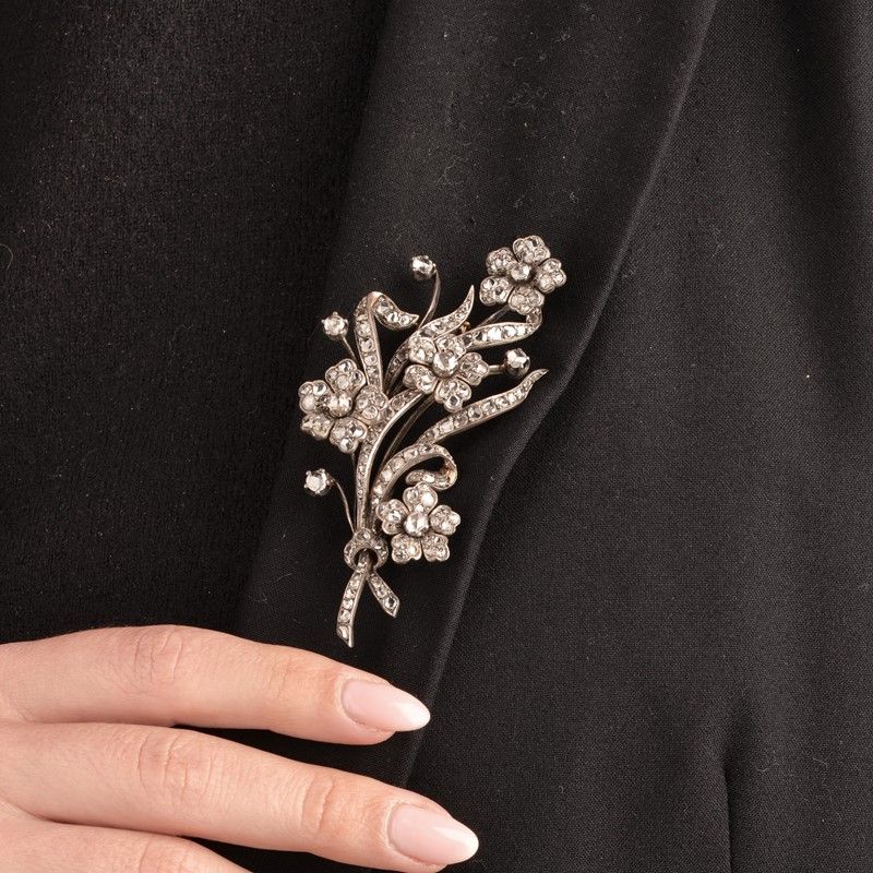 FLOWERING BRANCH DIAMOND BROOCH IN GOLD AND SILVER