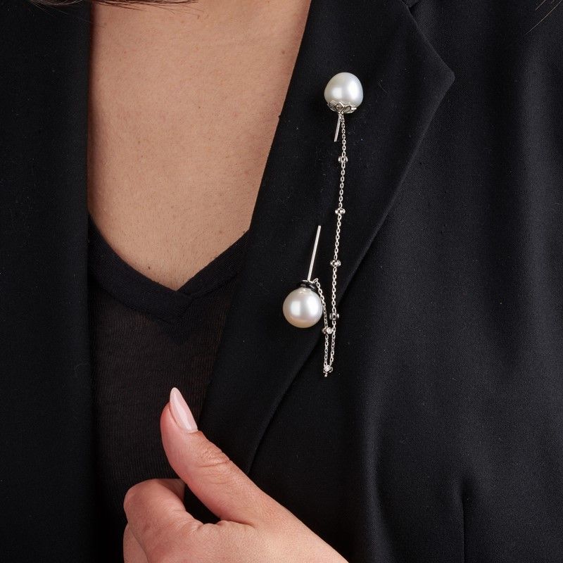 SOUTH SEA PEARL AND DIAMOND BROOCH IN 18KT WHITE GOLD