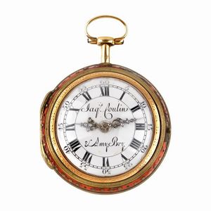 JACQUES COULIN & AMY BRY OROLOGIO DA TASCA cassa e controcassa in oro giallo 18kt e cassa esterna in metallo, [..]