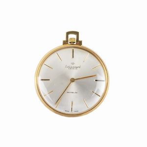 EDISSOUNT OROLOGIO DA TASCA cassa monoblocco in oro giallo 18kt, quadrante argenté, grafica nera, indici [..]