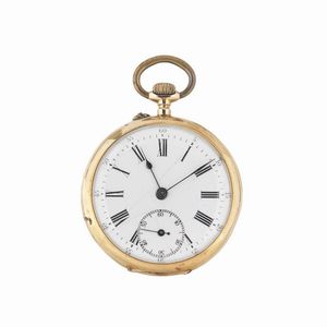 REMONTOIR OROLOGIO DA TASCA N. 1345XX cassa in due parti in oro giallo 18kt, fondello guilloché con stemma [..]