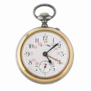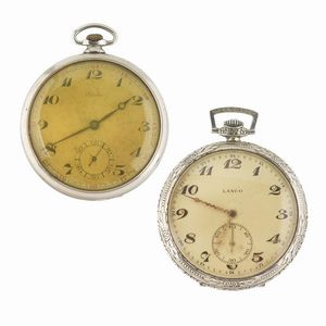 DUE OROLOGI DA TASCA Un orologio da tasca Lanco dalla cassa in due parti in acciaio, fondello guilloché [..]