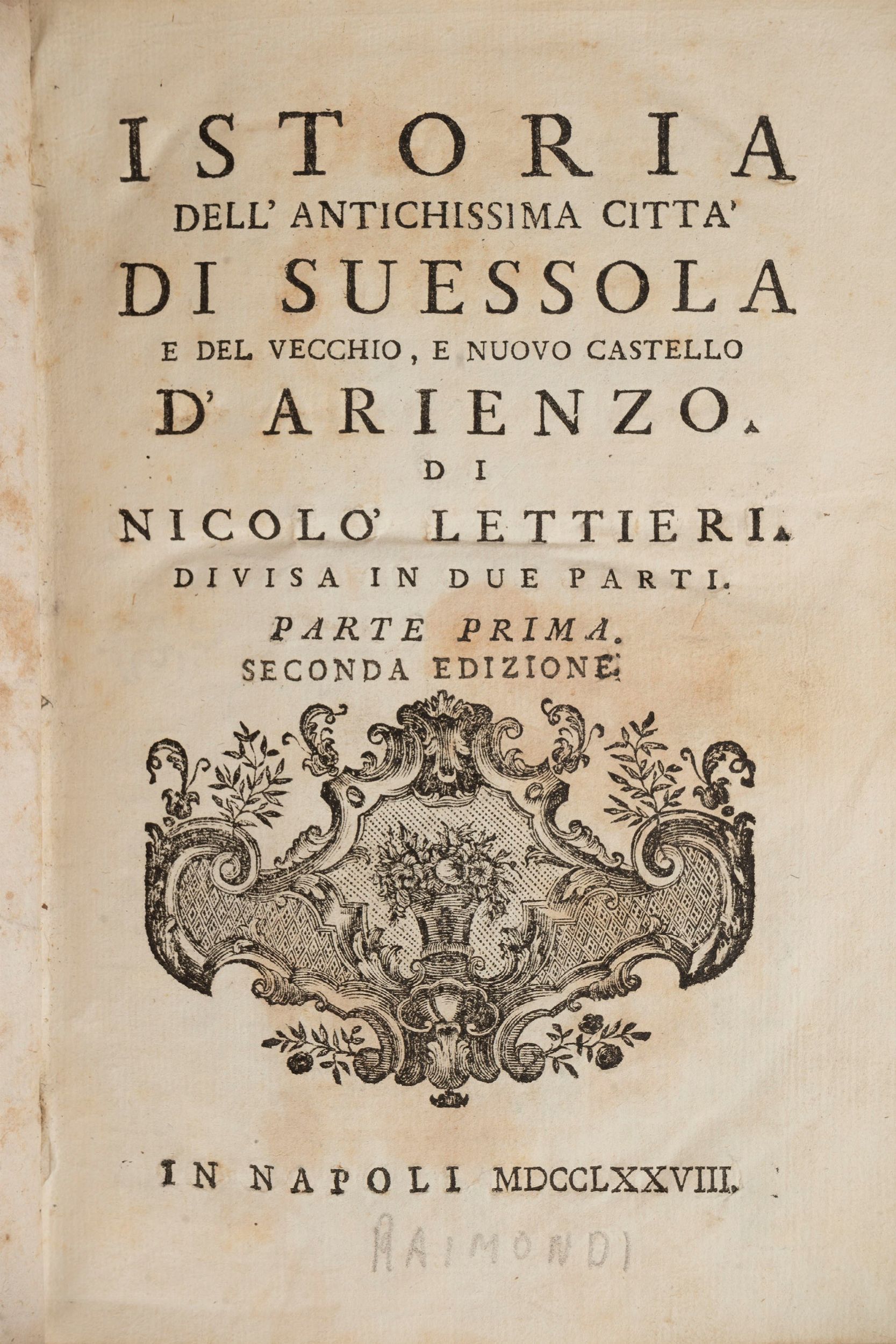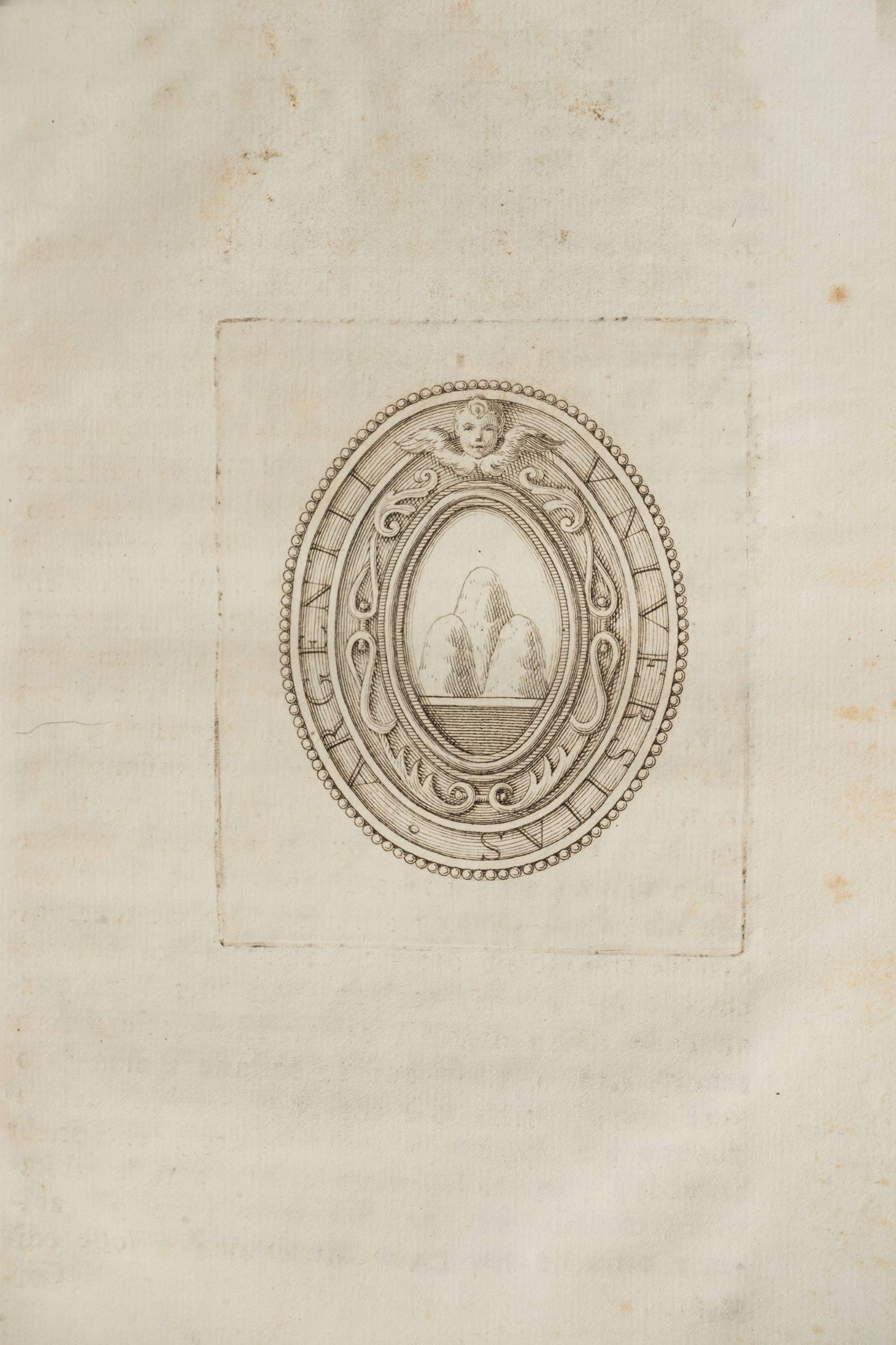 1778 Napoli, s.s.1778. In quarto. due Parti in un volume, ciascuno con proprio frontespizio. Al frontespizio vignetta floreale, testatine tipografiche, tavola a piena pagina nella seconda parte, qualche macchia, qualche foro di tarlo alle ultime pagine. Legatura in pergamena, coeva, con dorso liscio e con titolo impresso in oro, piccoli difetti e mancanze.