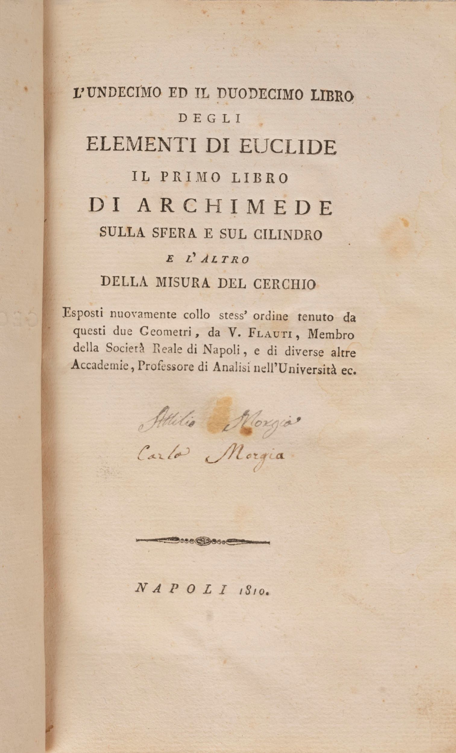 L'undecimo ed il duodecimo libro degli elementi di Euclide. Il primo libro di Archimede [..]