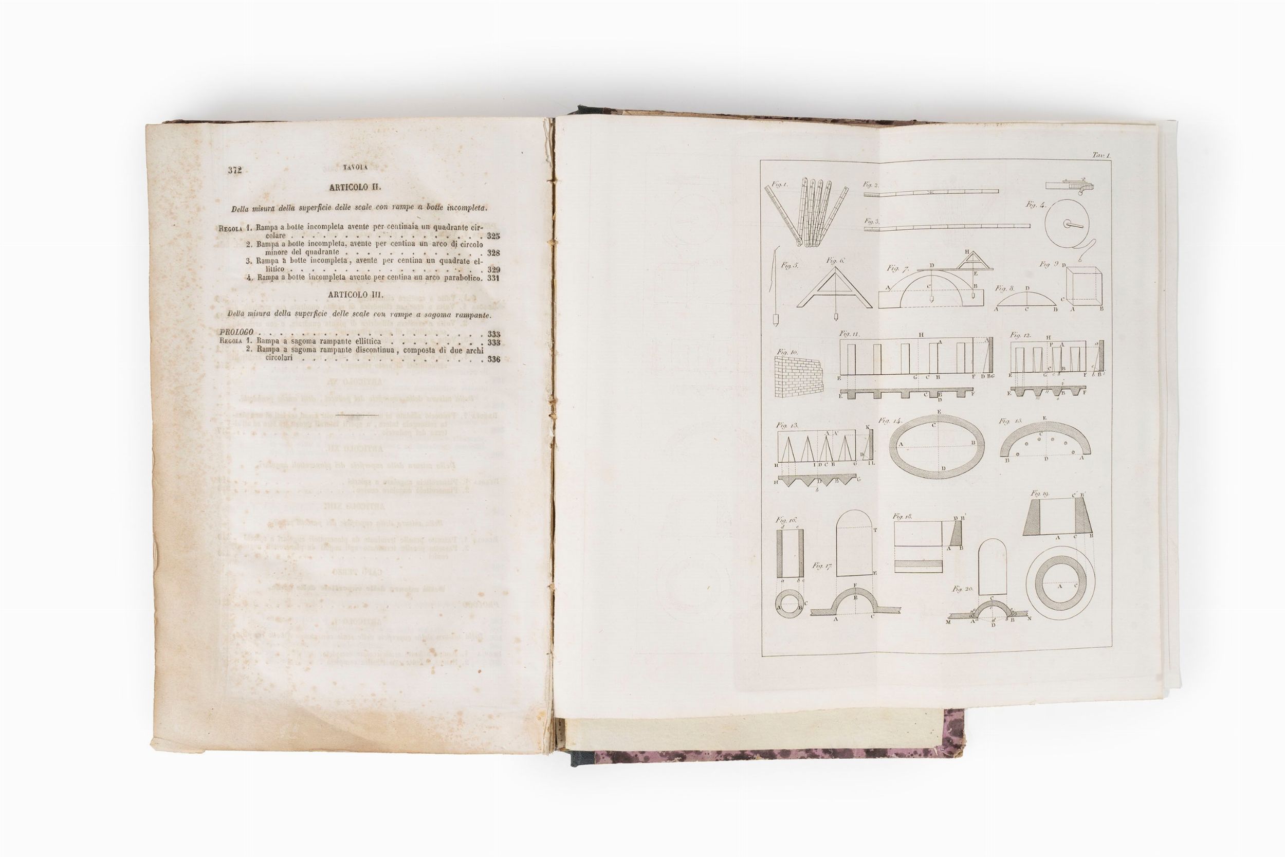 Napoli, Reale Tipografia Militare, 1858. In 8°. pp. 372, Fregio al frontespizio, con 12 tavole incise su rame ripiegate f.t., qualche rara fioritura, legatura coeva mz. tela, tit. in oro al dorso, lievi difetti.
