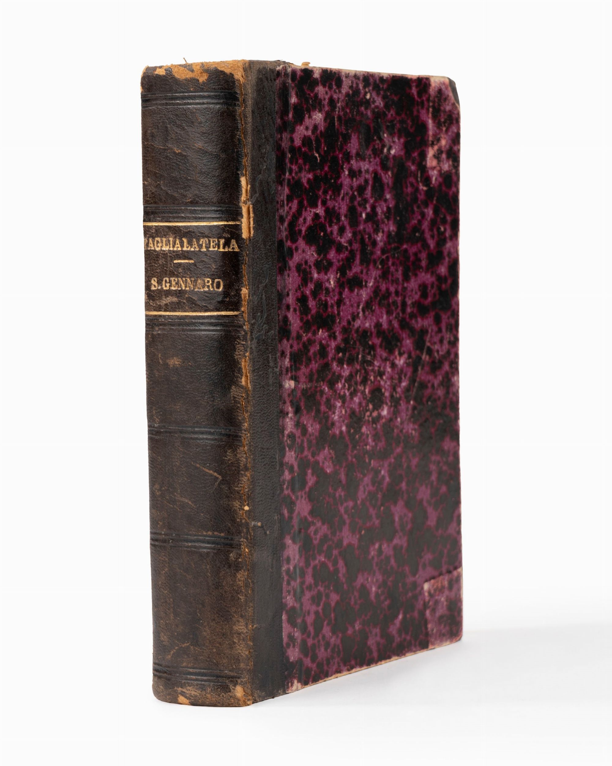 Napoli, Tipografia Napoletana, 1893. In 16°, pp. 521, doppia antiporta con il ritratto del Santo e la raffigurazione dell'ostensorio del sangue, leggera brunitura, qualche rara fioritura, legatura coeva mz. pelle, titolo in oro al dorso, leggere spellature, lievi difetti.