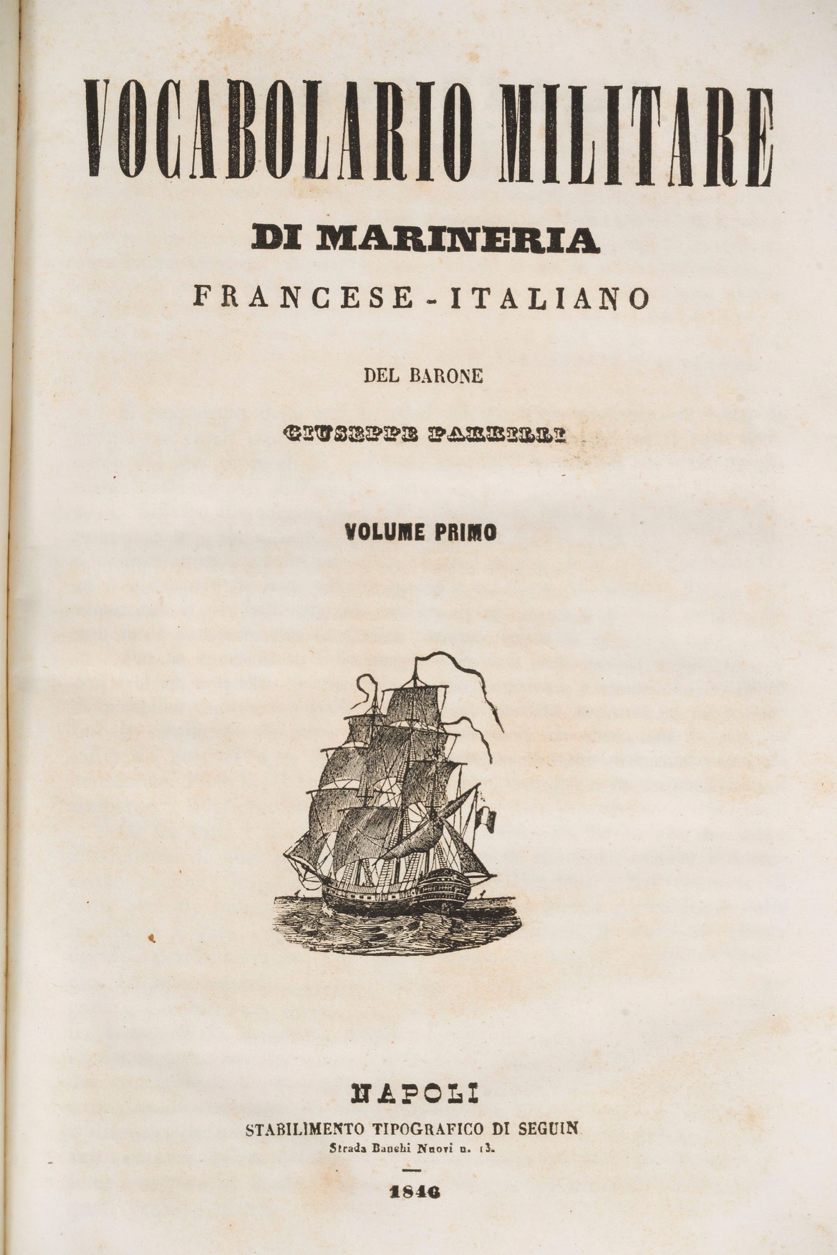 Napoli, Seguin, 1846 - 1847. In 4°, 2 voll., pp. 526; 570, Vignetta ai frontespizi, testo su due colonne, fioriture sparse, legatura coeva mz. pelle, titolo e fregi in oro al dorso, tagli colorati, lievi difetti.