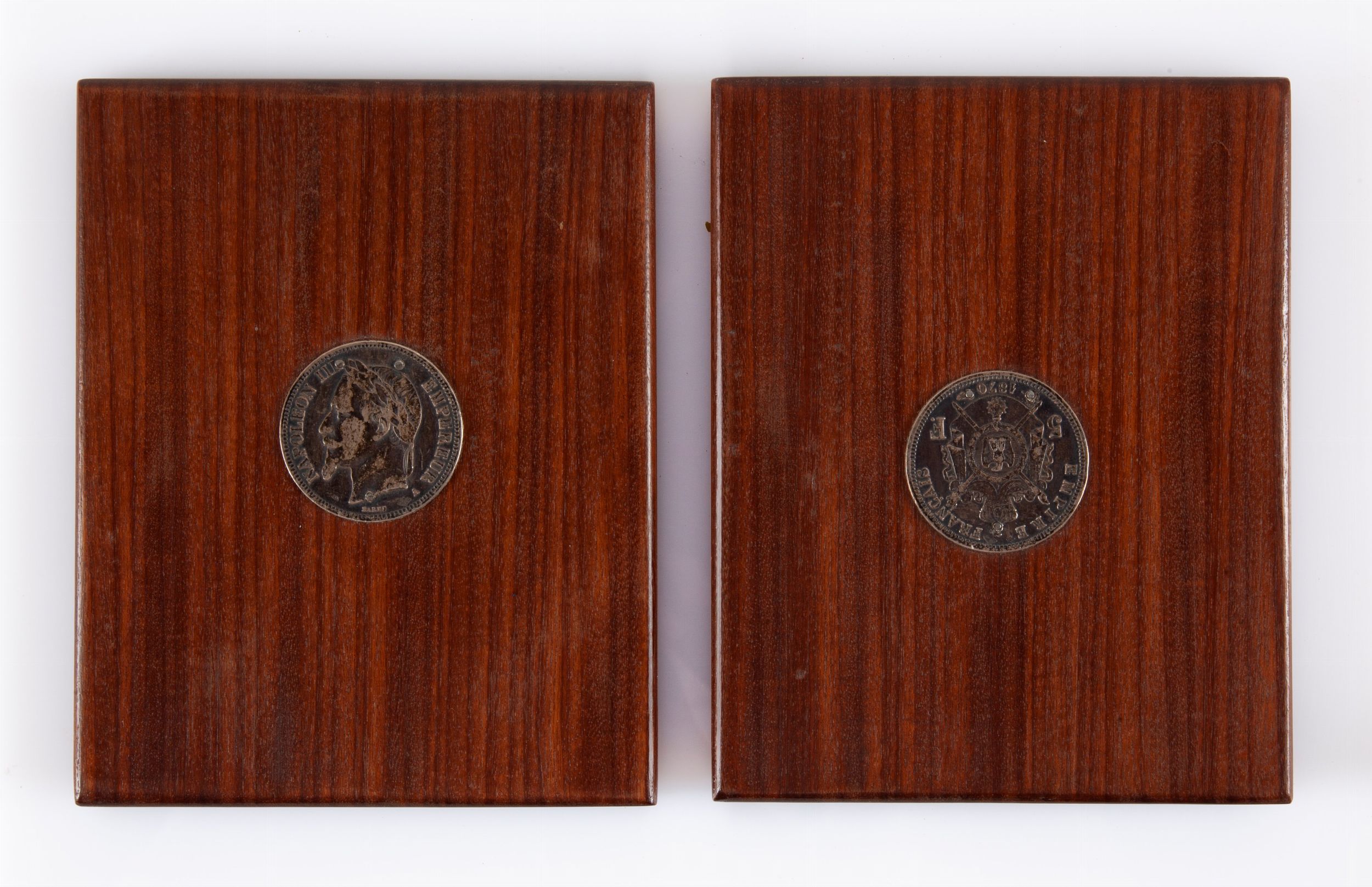 5 Franchi 1870 Napoleone III Francia Parigi. Divisa a metà e montata su 2 basi di [..]
