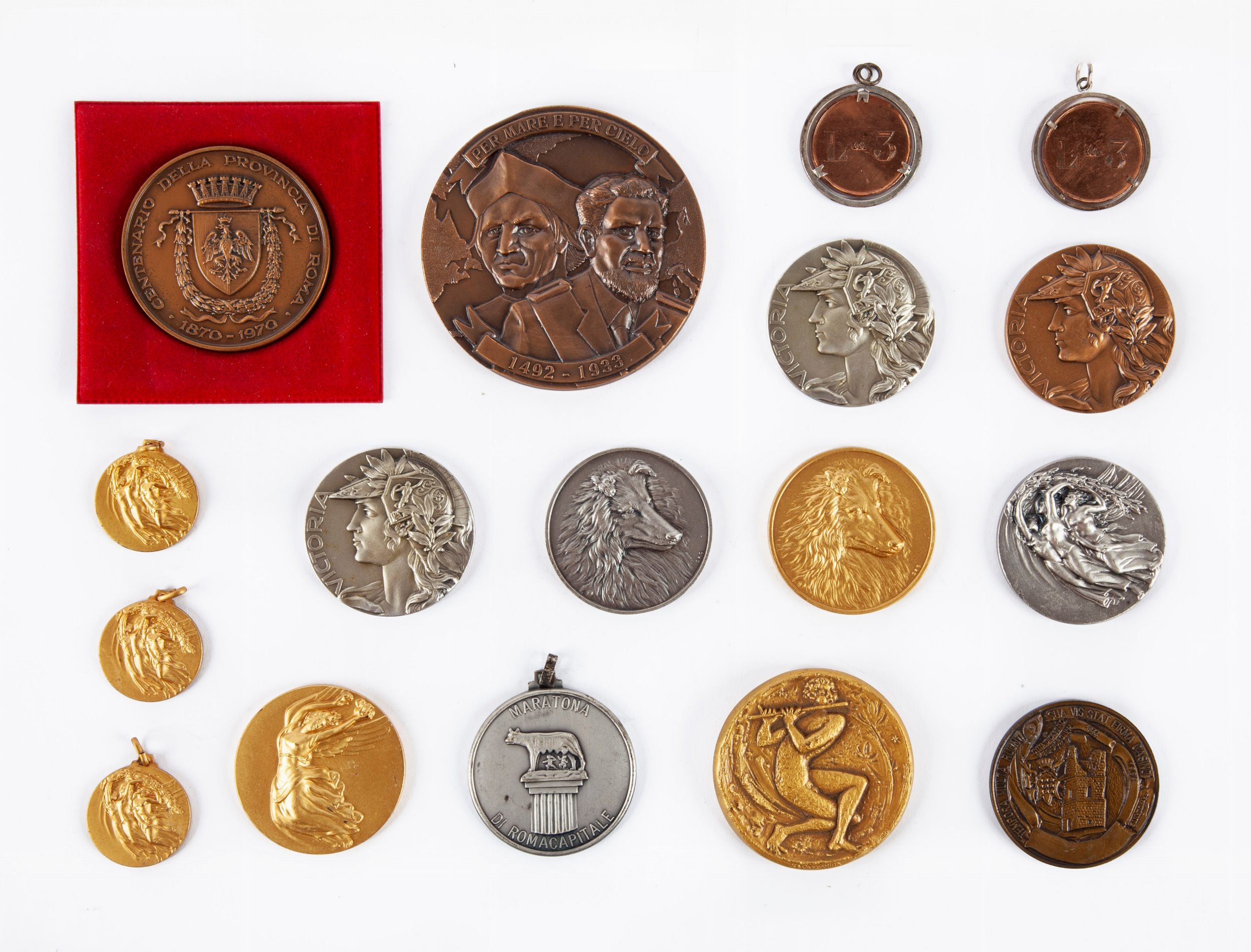 Diam mm 30/82 2 della Società del Tiro al Volo di Roma montate in argento 800/000; Medaglia uniface con suonatore di flauto di Silvio Cazzaniga; 50° Anniversario della Medaglia d'oro a Montecassino 1944-1954; Centenario della Provincia di Roma 1870-1970; 70° della Trasvolata Atlantica di Italo Balbo del 1933; 10 Medaglie premio della Regione Lazio; 1 della Maratona di Roma Capitale.