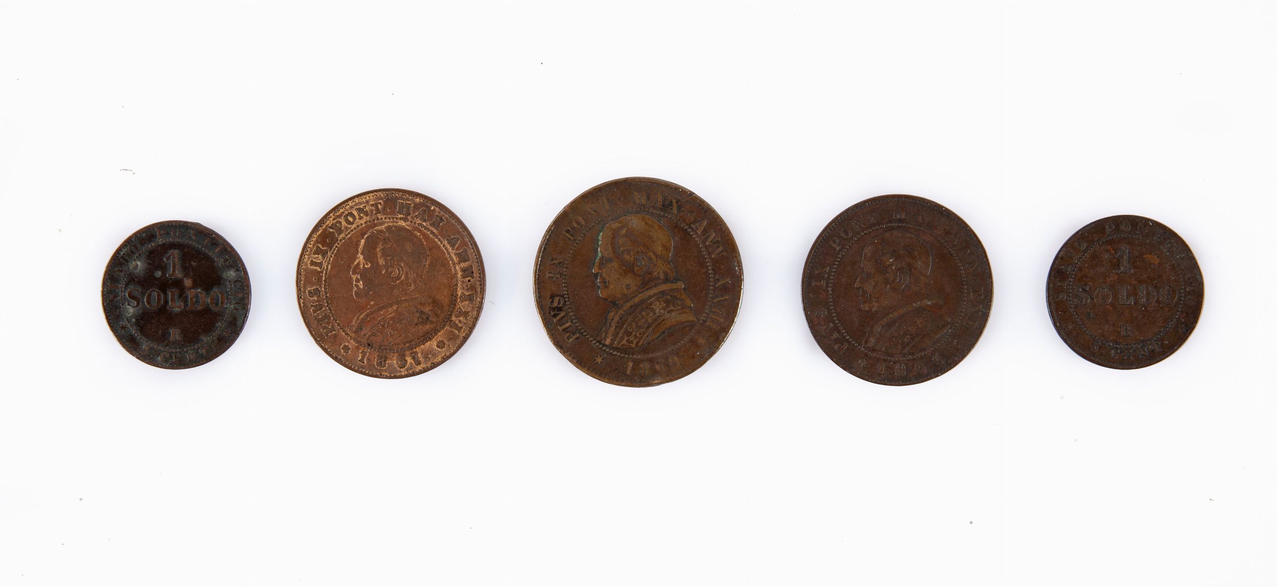 Lotto 5 monete Stato Pontificio: 4 Soldi 1869 A.XXIII Roma; 2 Soldi 1866 Anno XXI [..]