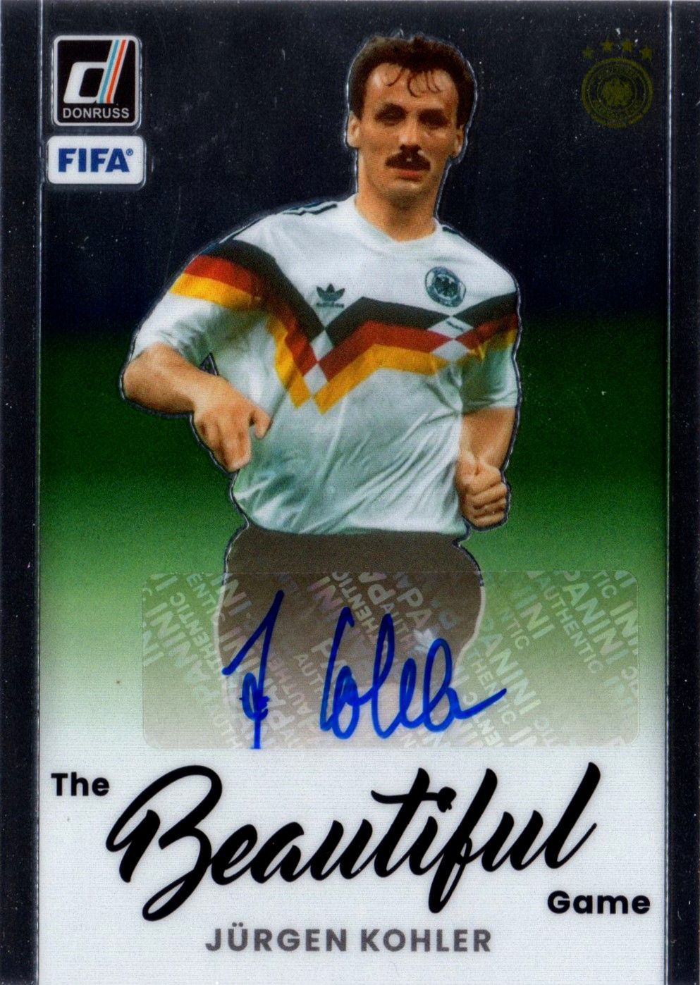 Card autografata da Jurgen Kohler, prodotta e certificata dalla Panini America nel 2022.