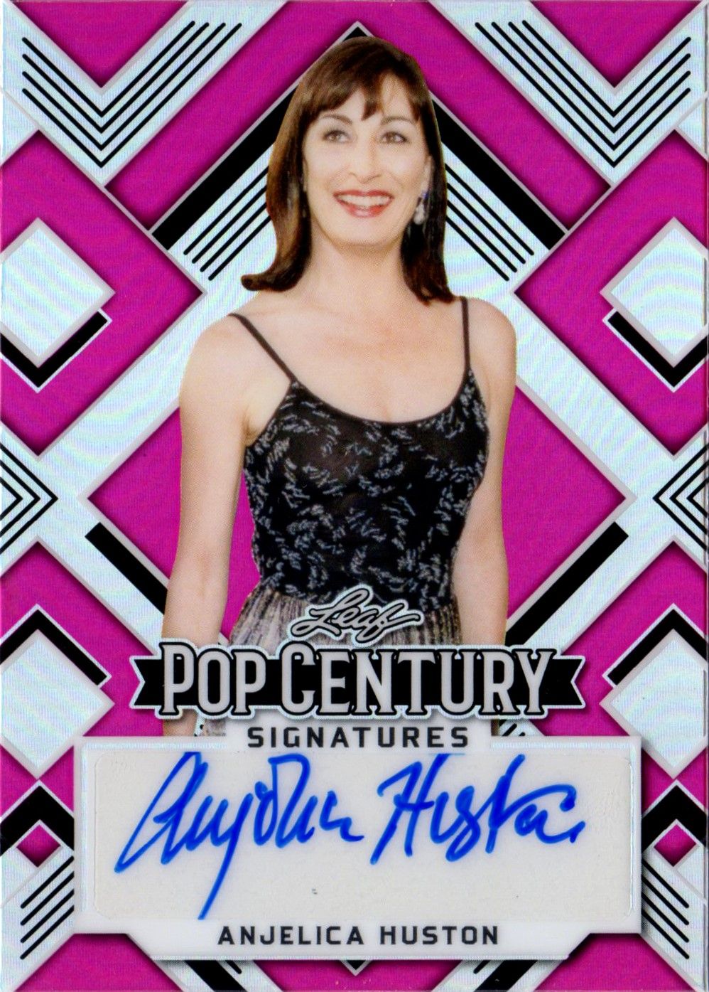 Card autografata dall'attrice Anjelica Huston, prodotta e certificata dalla Leaf con tiratura 6/15 nel 2021.