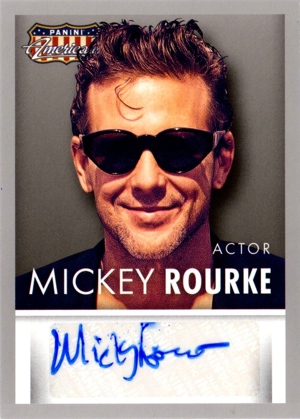 Card autografata dall'attore Mickey Rourke, prodotta e certificata da Panini Americana nel 2015.